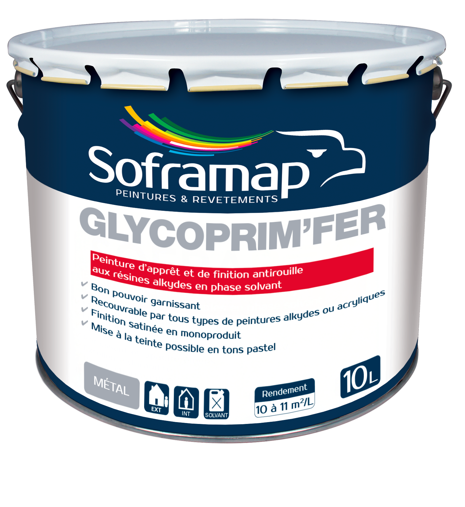 Peinture-laque antirouille semi-brillante aux résines alkydes en phase solvant. Pour la protection et la décoration en extérieur et intérieur des supports en métaux ferreux tels que : garde-corps, grilles, portails, menuiseries, métallerie, serrurerie de bâtiment, structures métalliques…