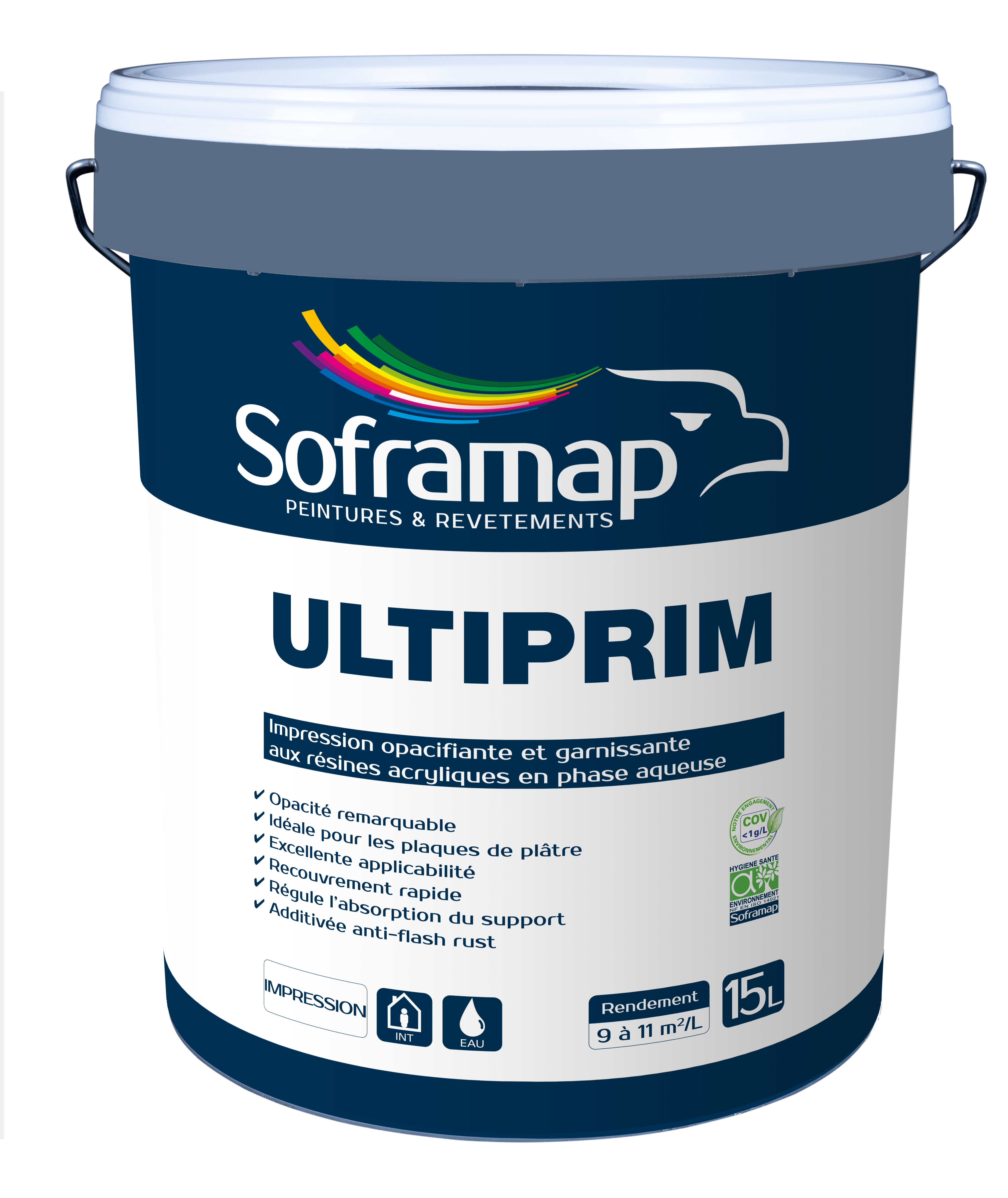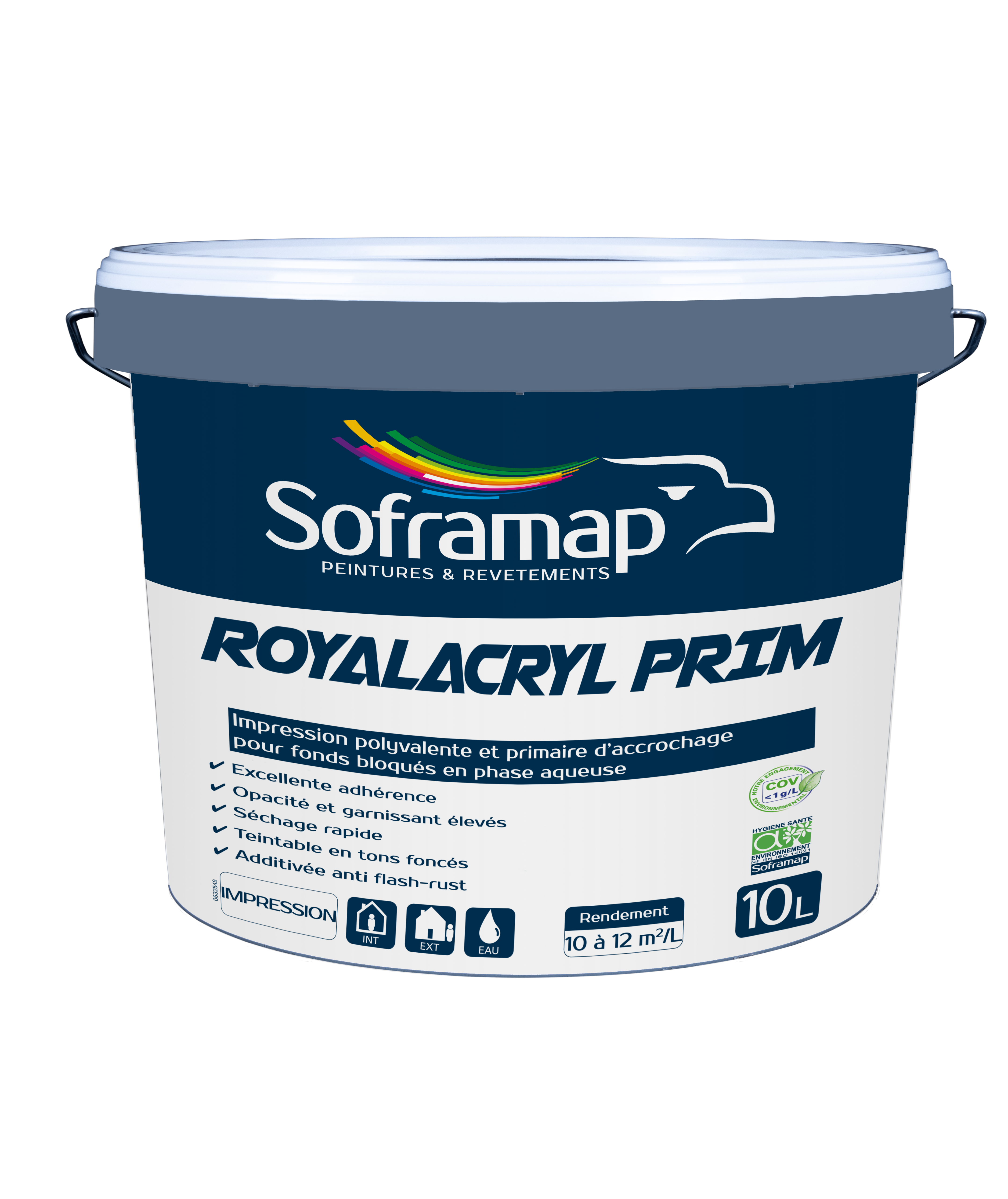 Impression universelle aux résines alkydes-acryliques en phase aqueuse. Pour l’impression en intérieur et extérieur de tous les supports traditionnels du bâtiment. S’applique sur murs, maçonneries, enduits intérieurs, carreaux de plâtre, plaques de plâtre à épiderme cartonné, fenêtres, persiennes, dessous de toit…