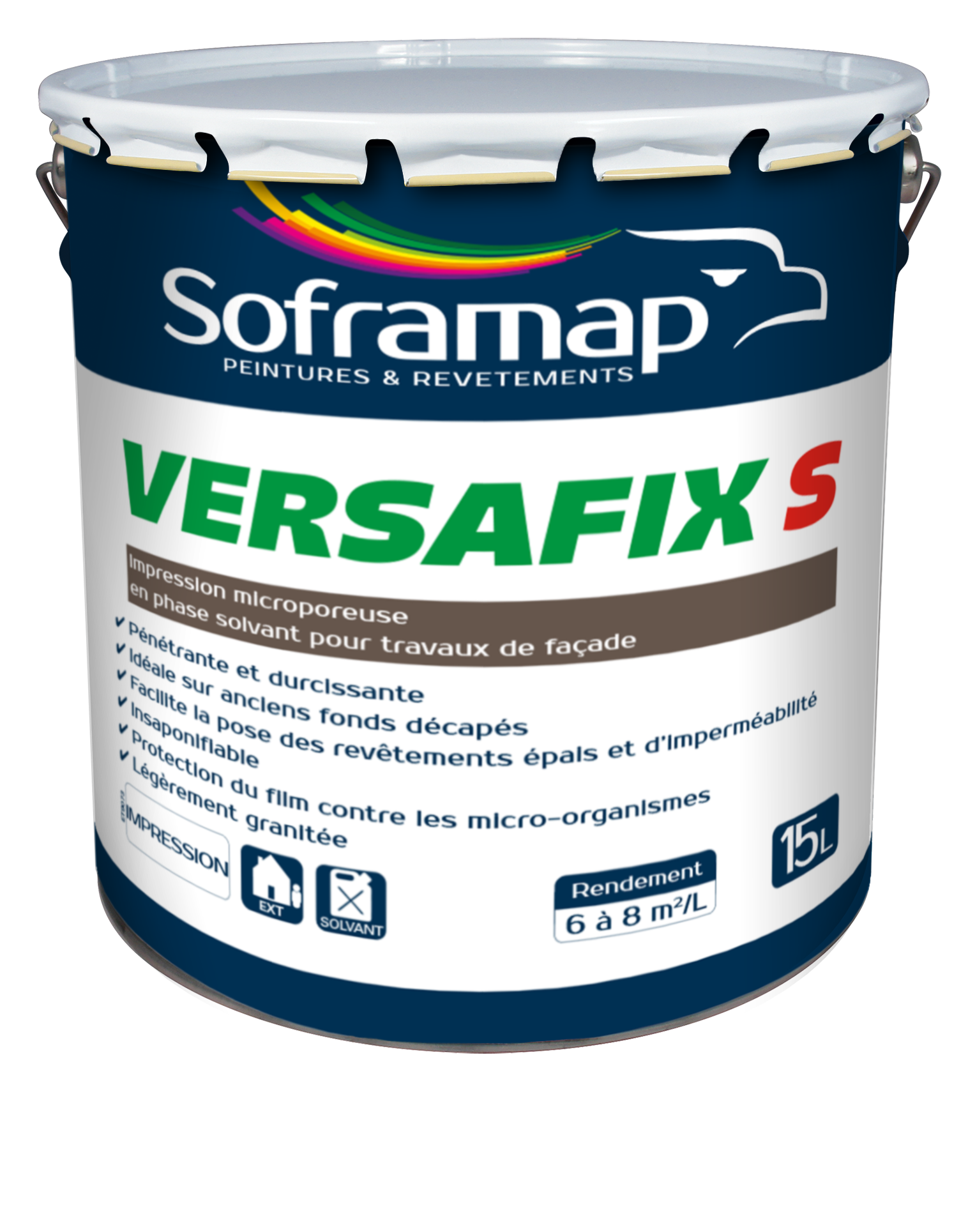 Impression microporeuse, légèrement granitée, en phase solvant pour travaux de façades. Pour l’impression en extérieur de tous les supports traditionnels du bâtiment. S’applique sur béton, maçonneries, enduits au mortier de liants hydrauliques…